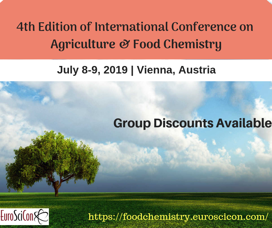 EuroSciCon invites all the participants from all over the world interested in Conference on Agriculture and Horticulture to attend “4th Edition of International Conference on Agriculture & Food Chemistry”. Food Science Meetings will be held during July 8-9, 2019 at Vienna, Austria.
